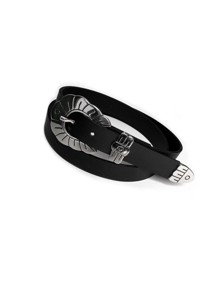 Cinto de capellada (ecocuero) color negro. Hebilla hecha en material zamac (aleación de Zinc, Aluminio, Magnesio y Cobre). Combinación perfecta para luzca brillosa y hermosa. Y lo más importante, fuerte y duradera.